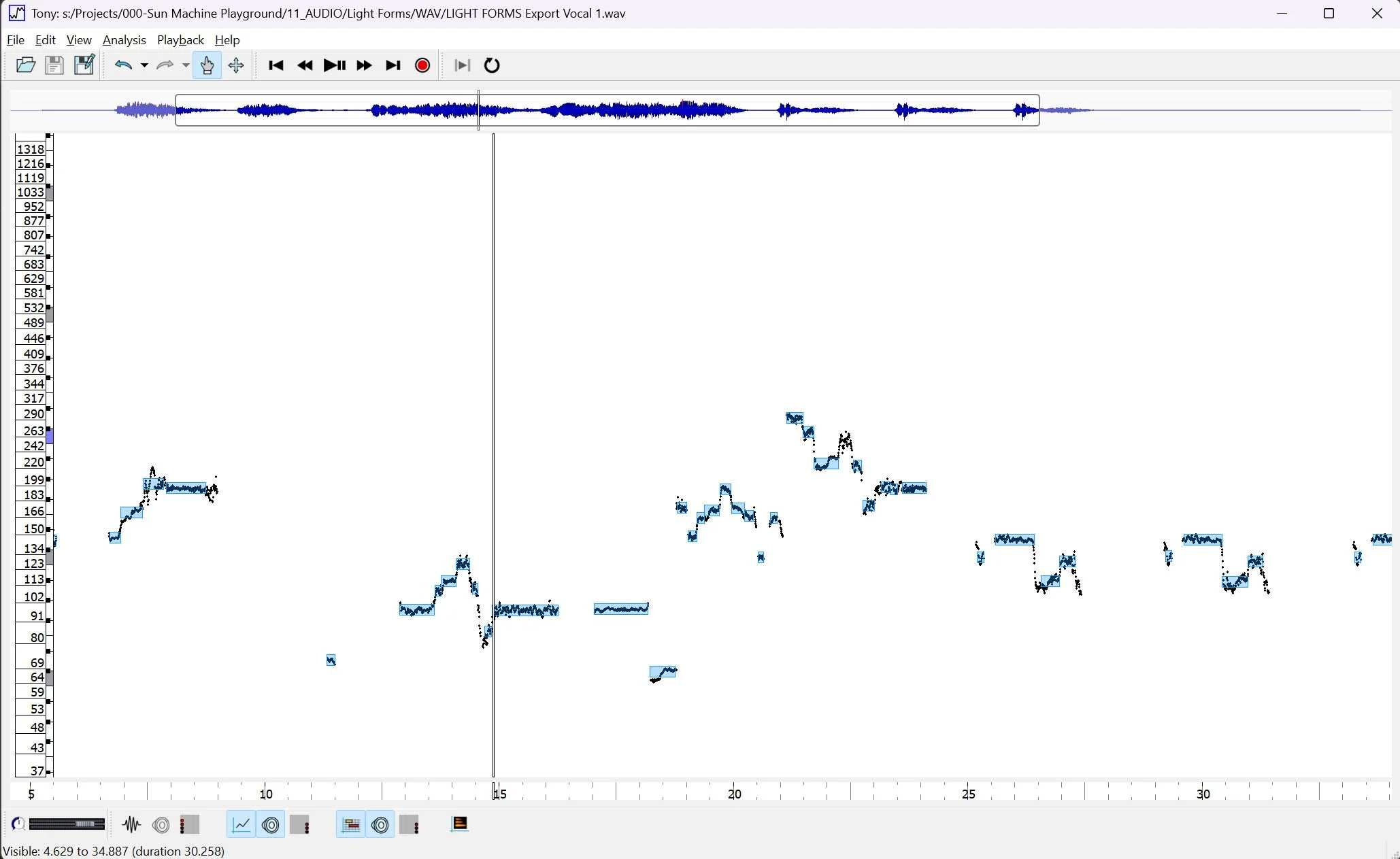 Tony is an open source software for transcribing pitch and assigning note values. The audio stems were fed into this then exported to data files.
