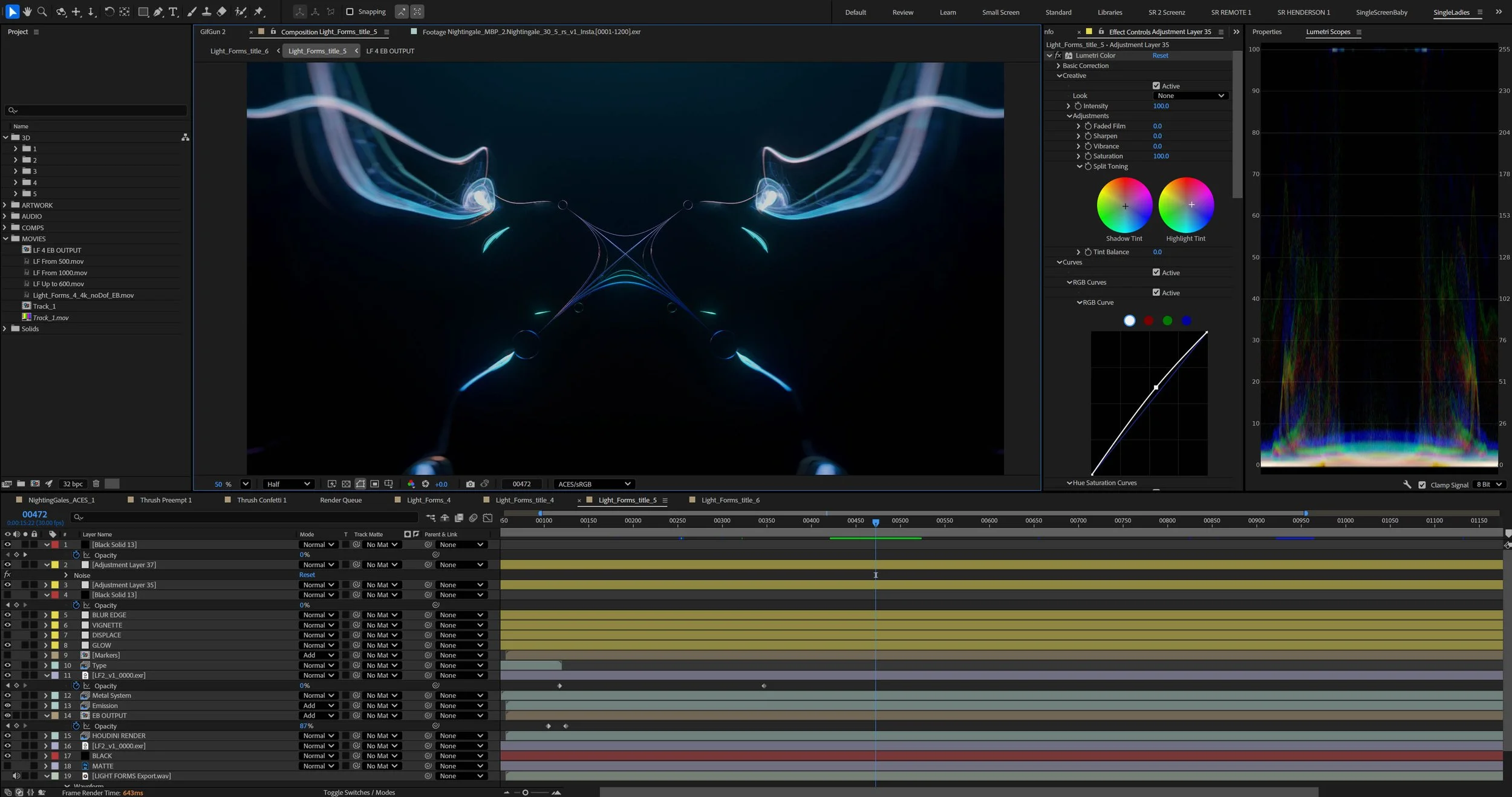 After Effects was used to composite the final renders, reapply the audio and add some post effects