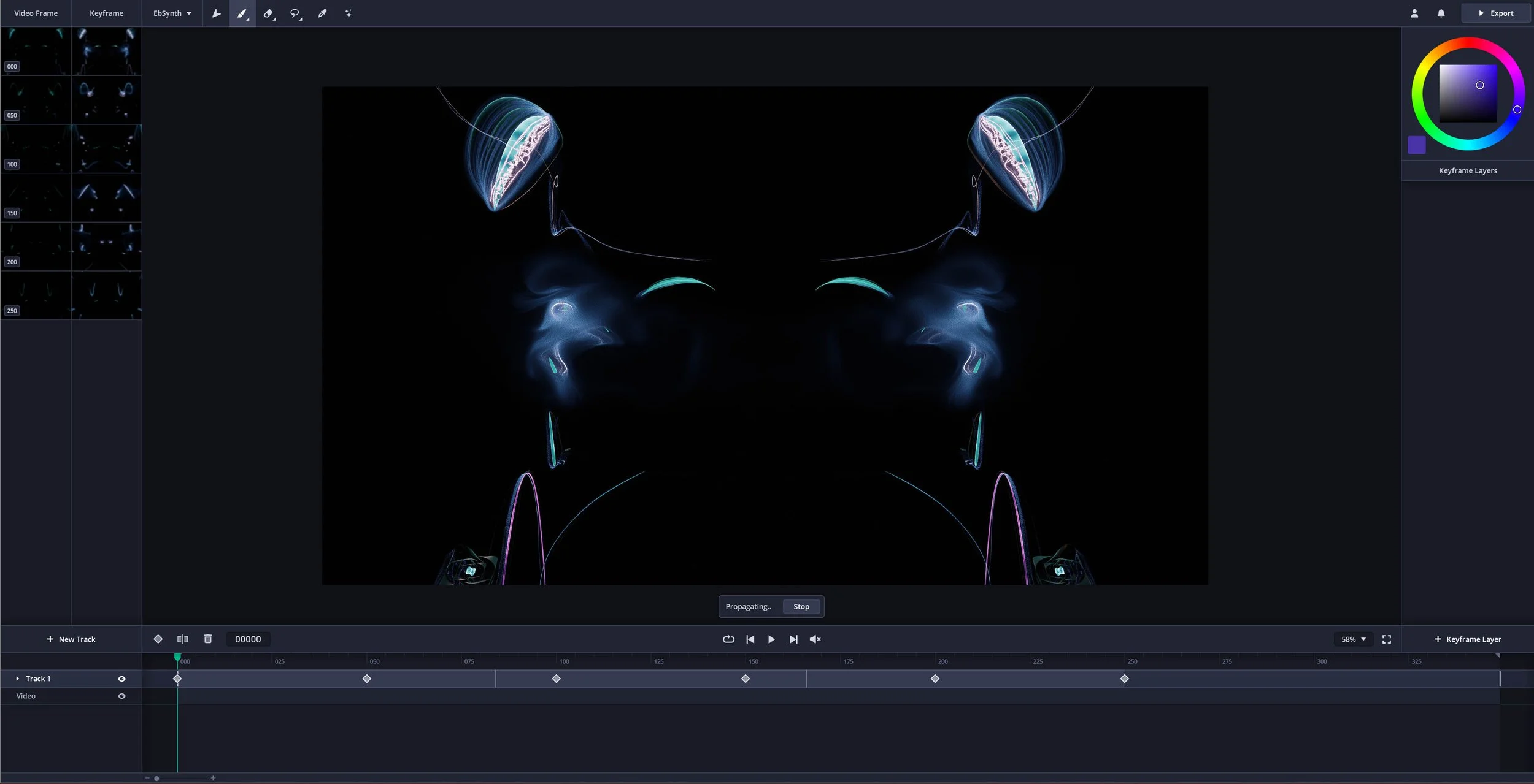 The Midjourney keyframes were then inputted into to Ebsyth for the style transfer