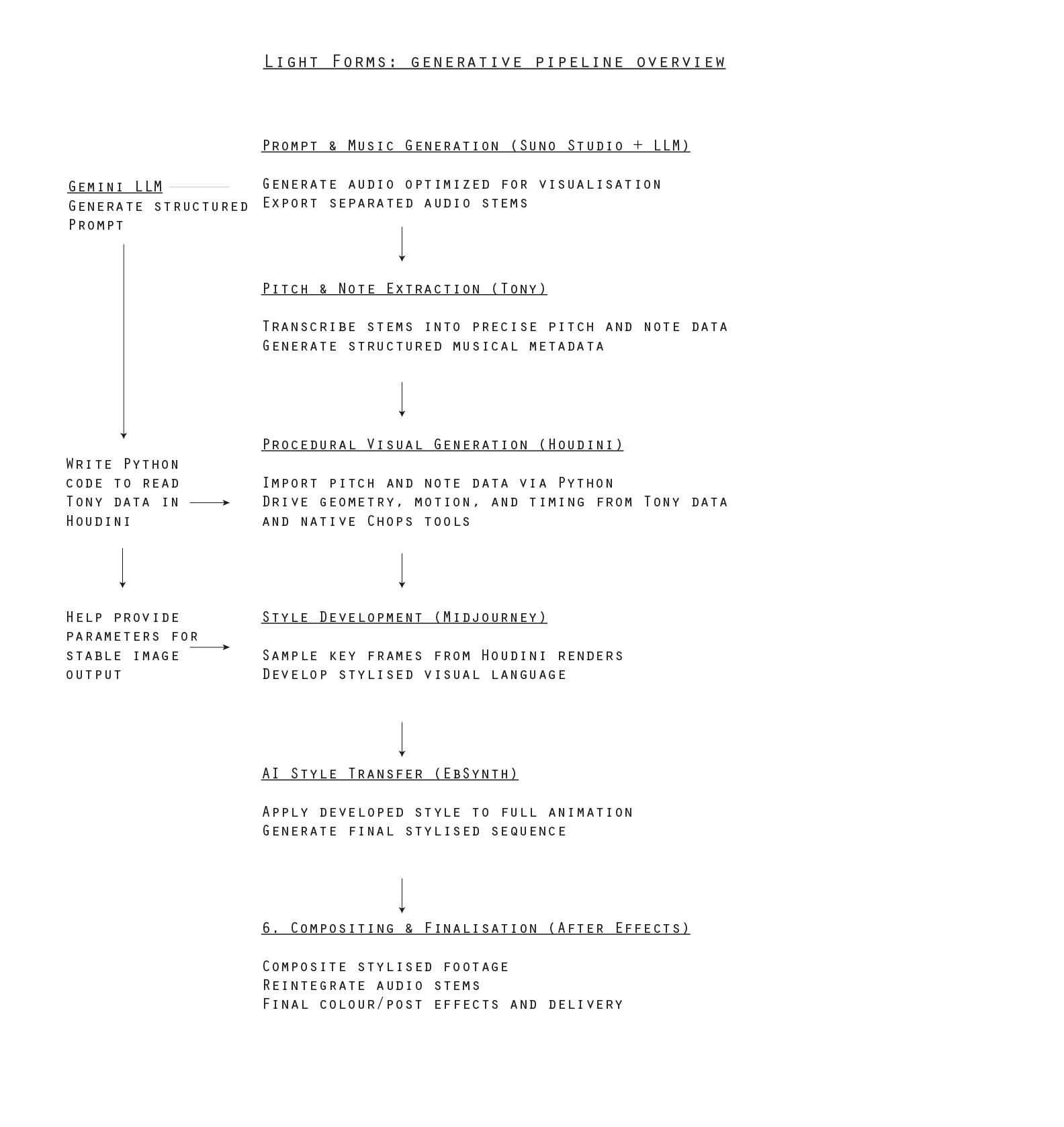 We’ve tried to document the workflow clearly, not as a technical breakdown but as an insight into how these tools can be integrated into a contemporary animation pipeline. For us, the interesting space is in the overlap: procedural systems shaped by musical logic, guided by human design decisions, with AI operating somewhere between assistant and collaborator.